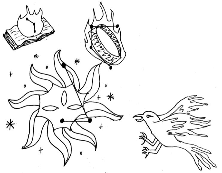15. Dannim: A good translation would be “soul-names” or “soul-signs.” The ancient people believed not in a single soul, but in many souls inhabiting different parts of the body, with some individuals being born under the stronger influence of one dominant soul. In later Nedic culture, this was used to explain both gender and one’s overall role in society. I was told that thirteen soul-signs are most commonly listed, which strongly reminds me of the star-signs. I also recall reading something of this birthsign-based Nedic social structure in Alwyn Acquelin’s On Nedes.