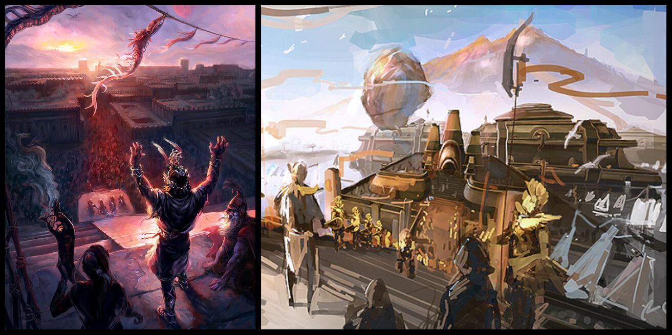 Sometimes when I am worldbuilding, I like to come up with systems of my own that naturally (yet creatively) generate the world for me. This does not simply mean the use of random generators but rather thought experiments. One, that I had, in hopes of following the steps of Tamriel and Glorantha to take common fantasy concepts with a unique twist, I came up with the concept of "punbuilding." What I would do is I would take common fantasy concepts, make a (bad) pun out of their names, and try to work from that to create a new concept for them. Here are some examples I came up with:Dragon → Drought-Gone: The Drought-Gone are mystical beings that appear during times of drought to provide relief. They resemble ancient dragons but are composed of shimmering, translucent water. These creatures fly over parched lands, releasing rainfall from their bodies to rejuvenate the soil and revive plant life. Their presence is considered a blessing, and many cultures celebrate their arrival with festivals and ceremonies.Elf/Elven → Eel-Ven: The Eel-Ven are aquatic beings that inhabit deep underwater caves and kelp forests. Resembling eels with elongated, ethereal bodies that emit a soft bioluminescent glow, they are known for their wisdom and knowledge of the ocean’s secrets. They communicate telepathically and are capable of manipulating electric currents, using this ability both for defence and to navigate through dark waters.Humen → Hue-Men: The Hue-Man are vibrant beings whose skin changes colour to reflect their emotions and thoughts. Each Hue-Man is a living palette of colours, capable of producing a mesmerizing display that communicates their inner state to others. They have an innate connection to nature and can influence the growth and health of plants through the colours they emit. The Hue-Man are known for their deep empathy, and their society values emotional expression and harmony with the natural world.Orc/Orcish → Ore-Kish: They are sturdy, earthbound creatures deeply connected to the mineral-rich depths of the mountains. They look like traditional orcs with their muscular build and rugged features but the Ore Kish have skin that glistens like various ores and metals, reflecting their close bond with the earth. They possess an innate ability to sense and extract precious minerals, and their society thrives on mining and metallurgy. Their weapons and armour are crafted from the finest materials, making them formidable in battle.Pirate → Pyrite: Deceitful and cunning treasure hunters who masquerade as wealthy and successful pirates. Named after the "fool's gold" they carry, these beings are known for their ability to create convincing illusions of wealth and grandeur. Their ships appear to be laden with gold and jewels, but upon closer inspection, it's all just cleverly crafted illusions. The Pyrite use their trickery to lure greedy adventurers and rival pirates into traps, leading them on wild goose chases or into dangerous waters.